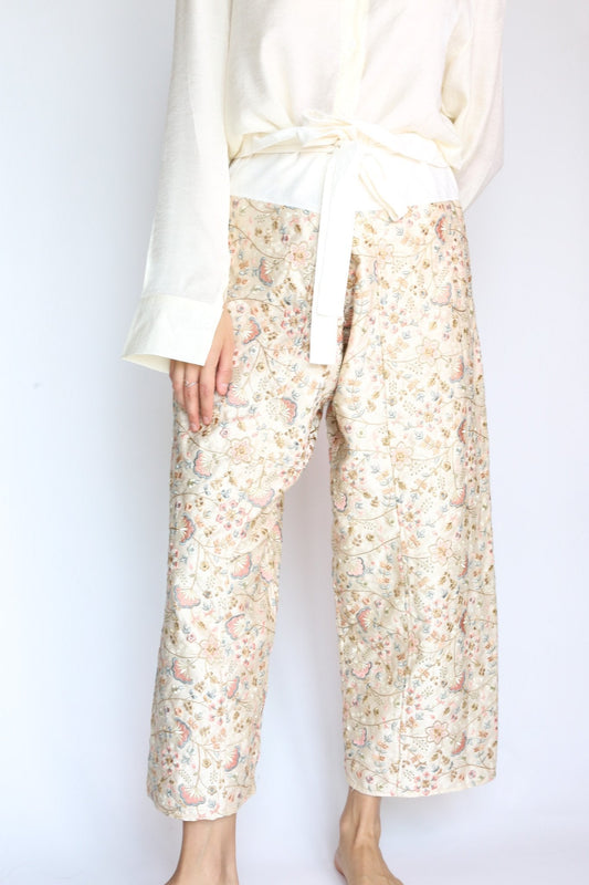 SILK EMBROIDERED FISHERMAN WRAP PANTS BELINDA