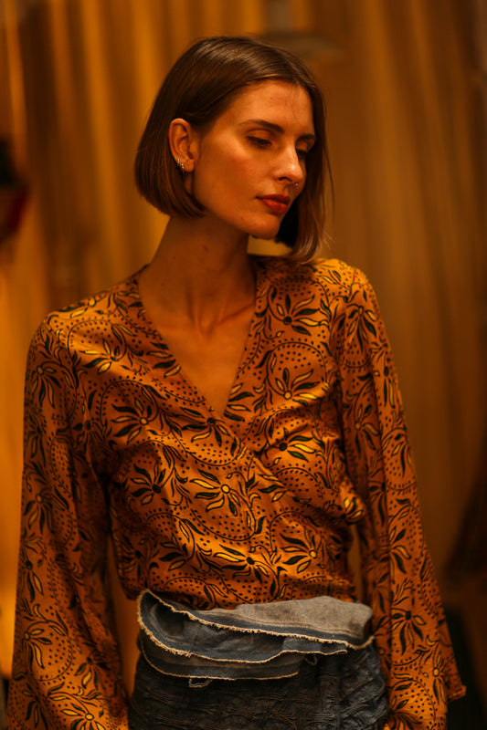 SILK WRAP TOP AURELIA DARK YELLOW LEOPARD