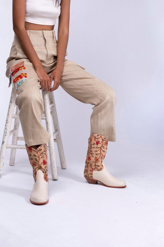IVORY HAND WOVEN WESTERN BOOTS X ANTHROPOLOGIE