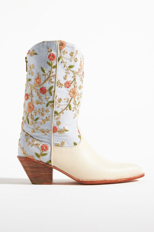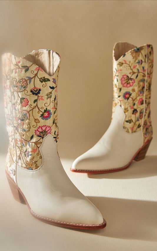 IVORY EMBROIDERED FLOWER WESTERN BOOTS X ANTHROPOLOGIE