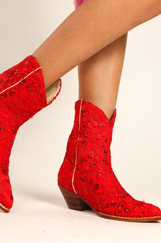 SILK EMBROIDERED SHORT BOOTS AIMEE