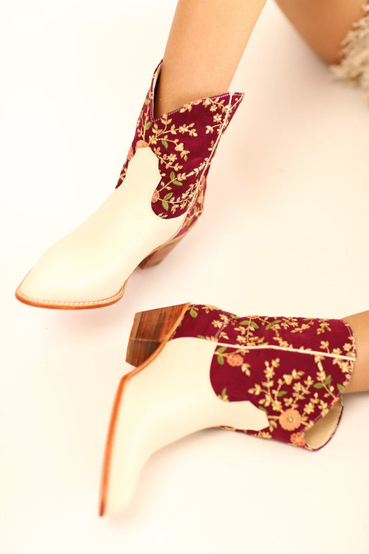 EMBROIDERED BOOTS ELOISE BURGUNDY RED