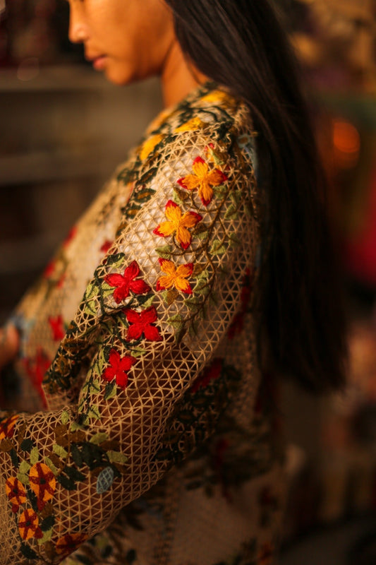 COTTON EMBROIDERED LACE KIMONO EWAS