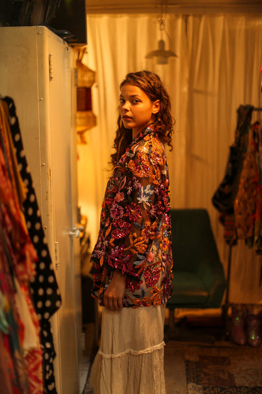CARMEN SEQUINED EMBROIDERED SHORT KIMONO