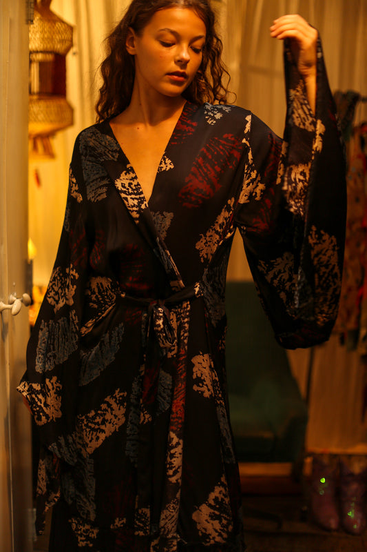 PINA SILK KIMONO RED AND BLUE ARTIST