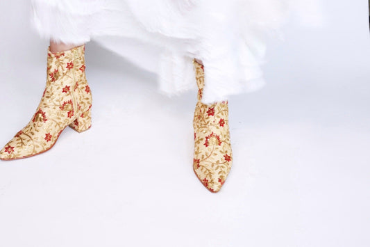 Nude/ Pink Velvet Embroidered Ankle Boots Sophie