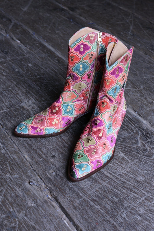 SILK VELVET EMBROIDERED BOOTS TIFFANY