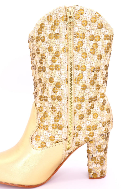 GOLD SEQUIN HEEL BOOTS ADRIENNE