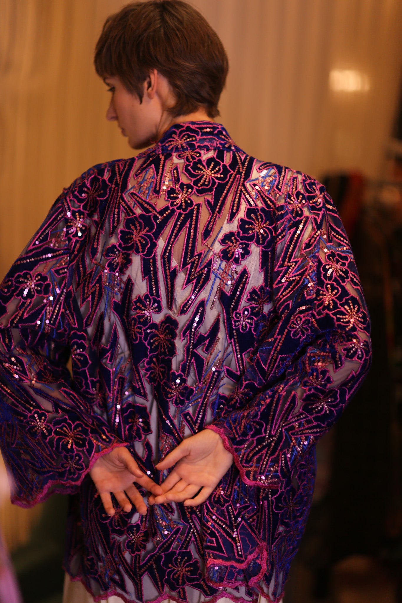 EMBROIDERED SILK SHORT KIMONO ANGEL