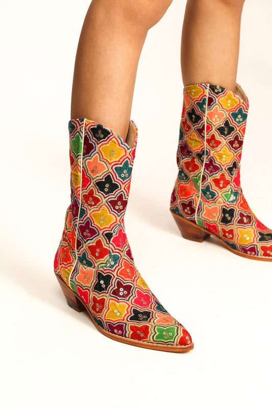 DIAMOND EMBROIDERED WESTERN BOOTS X ANTHROPOLOGIE