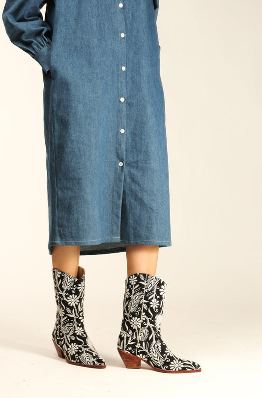 EMBROIDERED WESTERN BOOTS SILK LAFATA