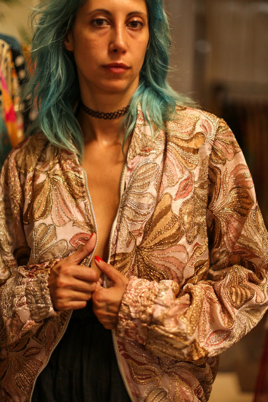 SILK SEQUIN EMBROIDERED BOMBER JACKET ANCHAราคาปกติ £106.00 SHPราคาปกติราคาต่อหน่วย ต่อ-