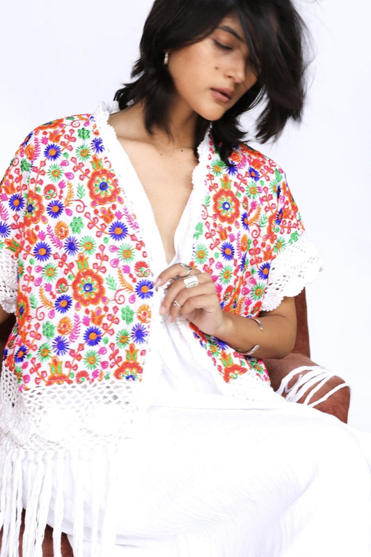 EMBROIDERED CROCHET FRINGE KIMONO ZANA