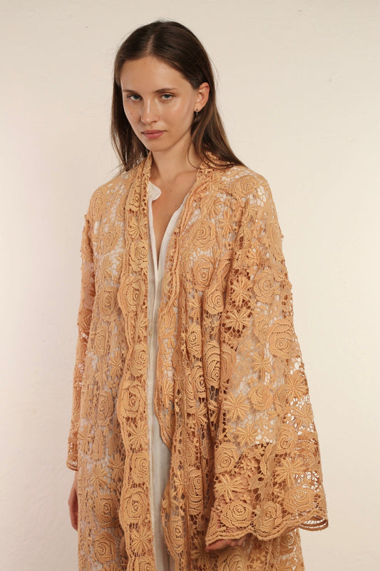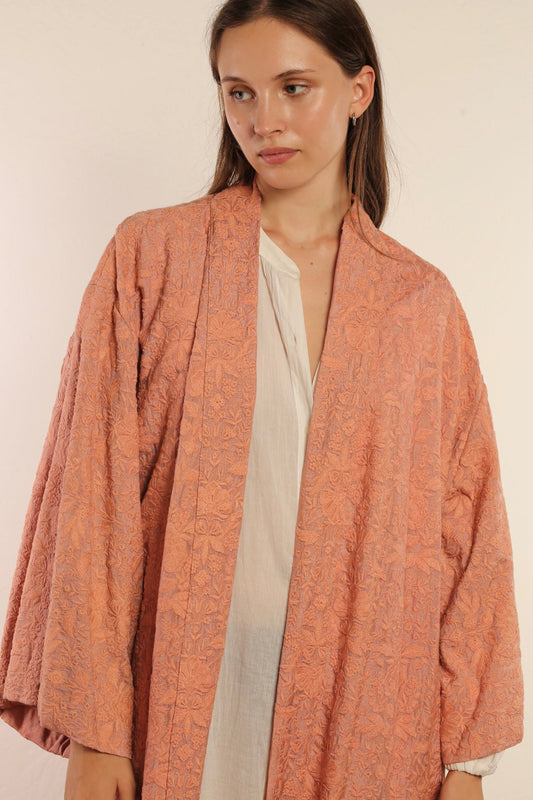 FLOWER COTTON LACE EMBROIDERED KIMONO