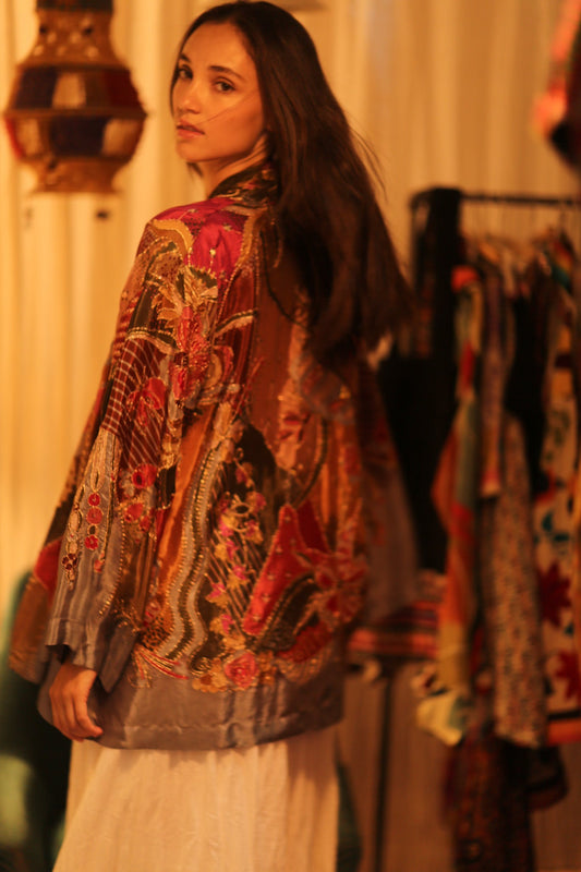 EMBROIDERED SILK SHORT KIMONO CARINE