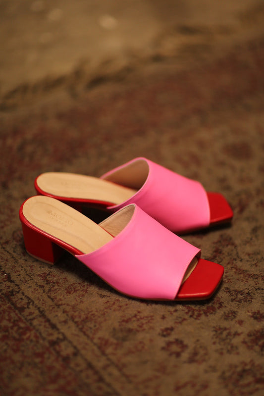 LEATHER HEELED MULES LORIN FUSHIA PINK
