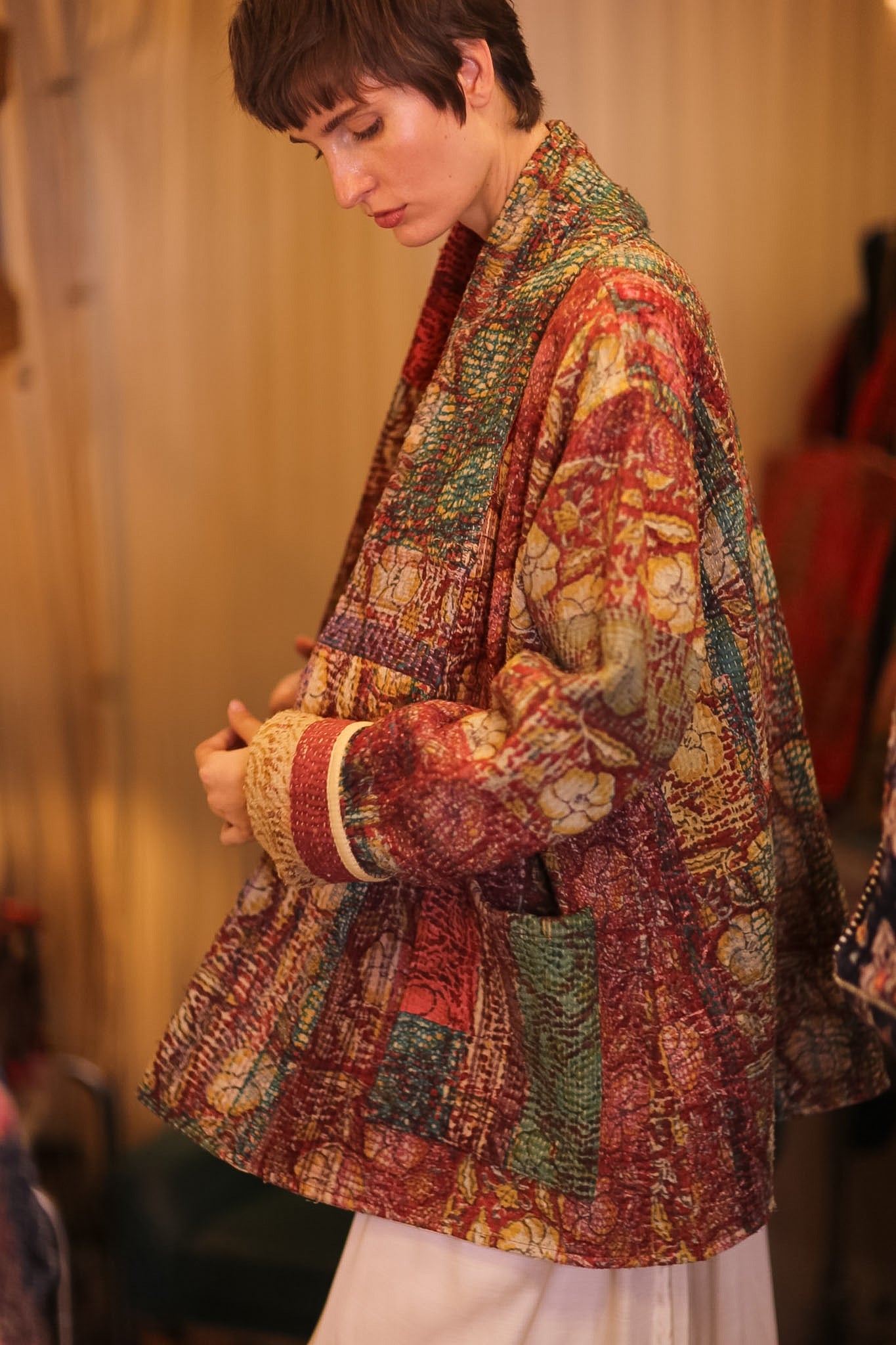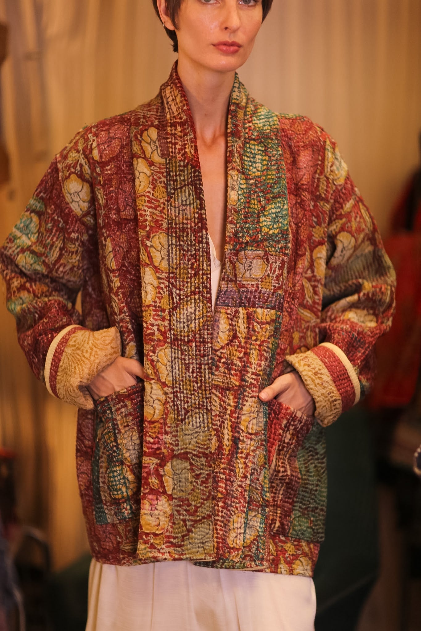 HALF KIMONO KANTHA JACKET - VINTAGE STYLE ART