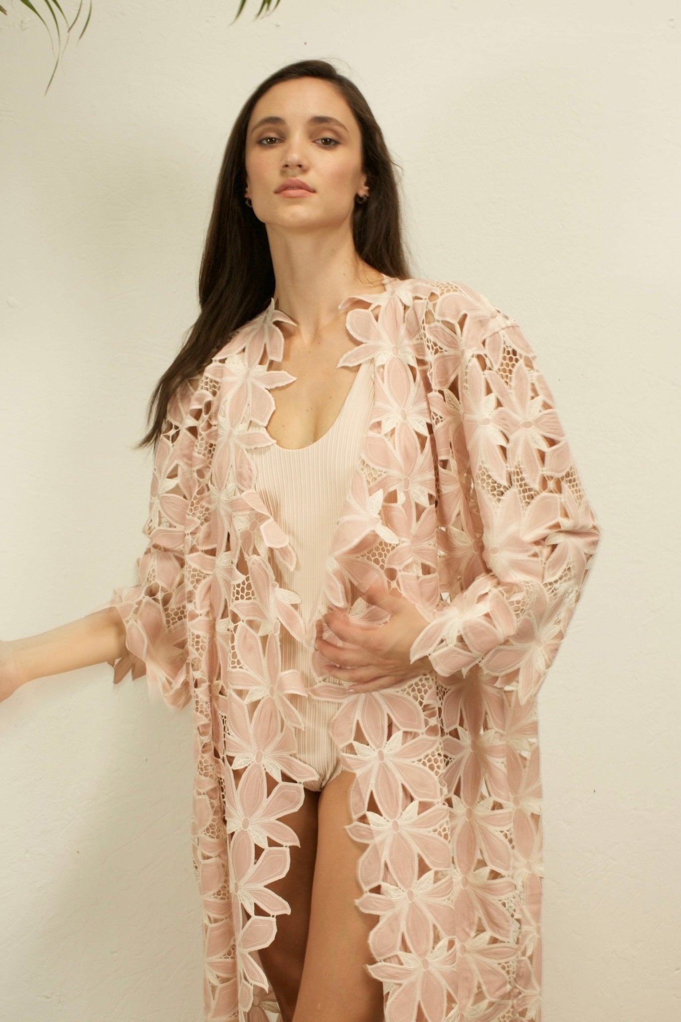 LITTLE PINK FLOWER COTTON LACE KIMONO
