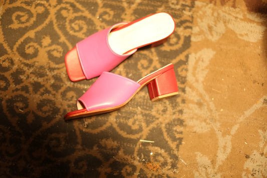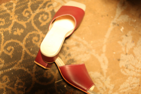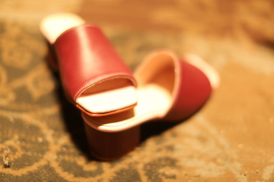 RED VELVET EMBROIDERED HEELED MULES PINDU