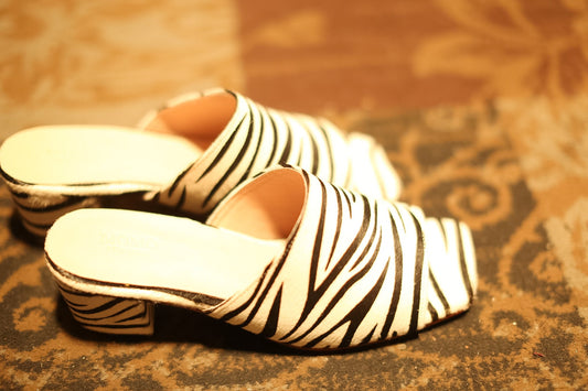 BLACK SNAKE PRINT HEELED MULES FILU