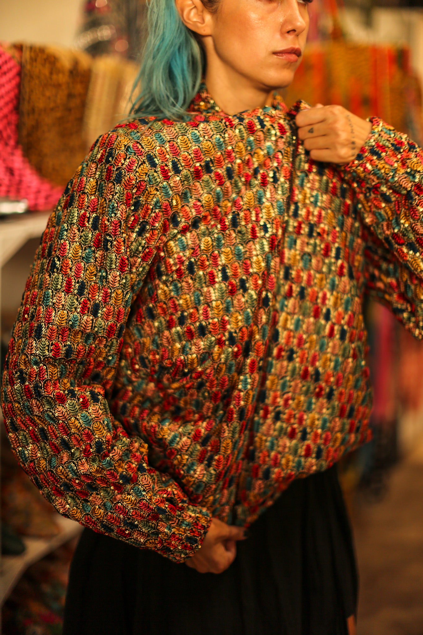 EMBROIDERED SILK BOMBER JACKET ANCHA