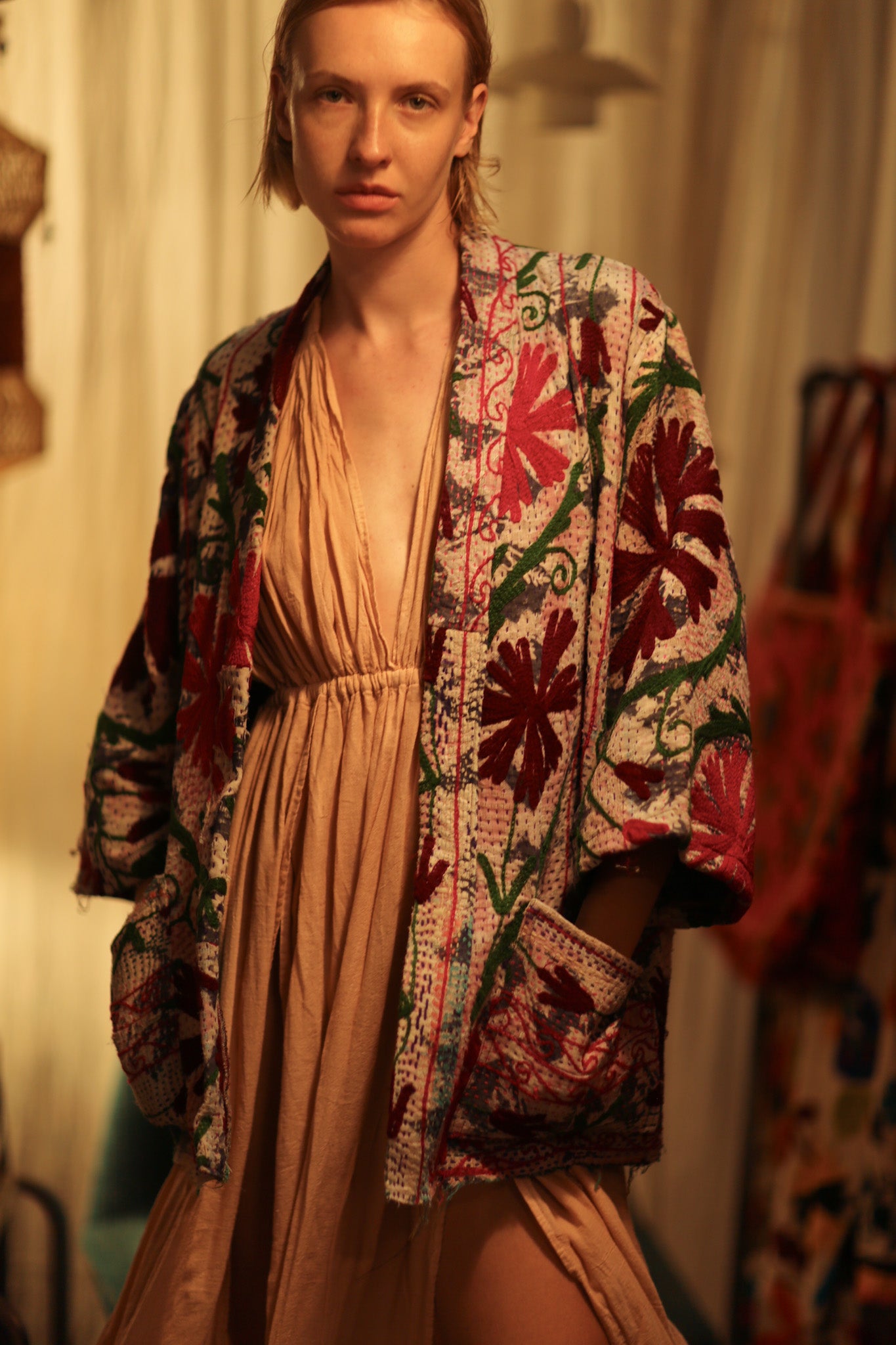 GINEVRA KANTHA EMBROIDERED SHORT KIMONO