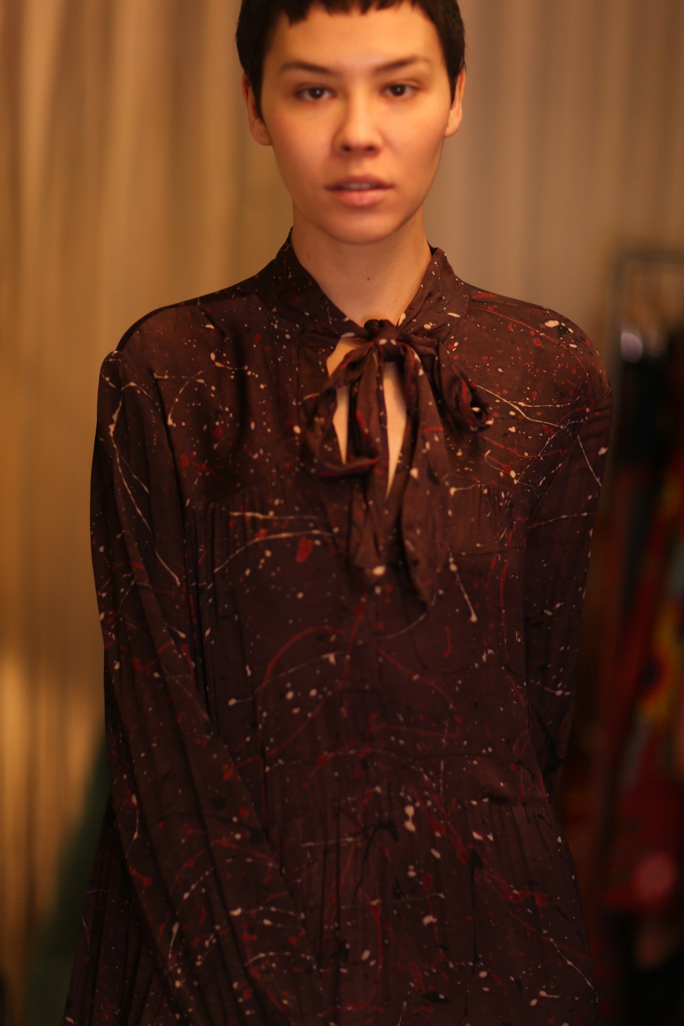 SILK MAXI BUTTONED DRESS LOA BROWNIE