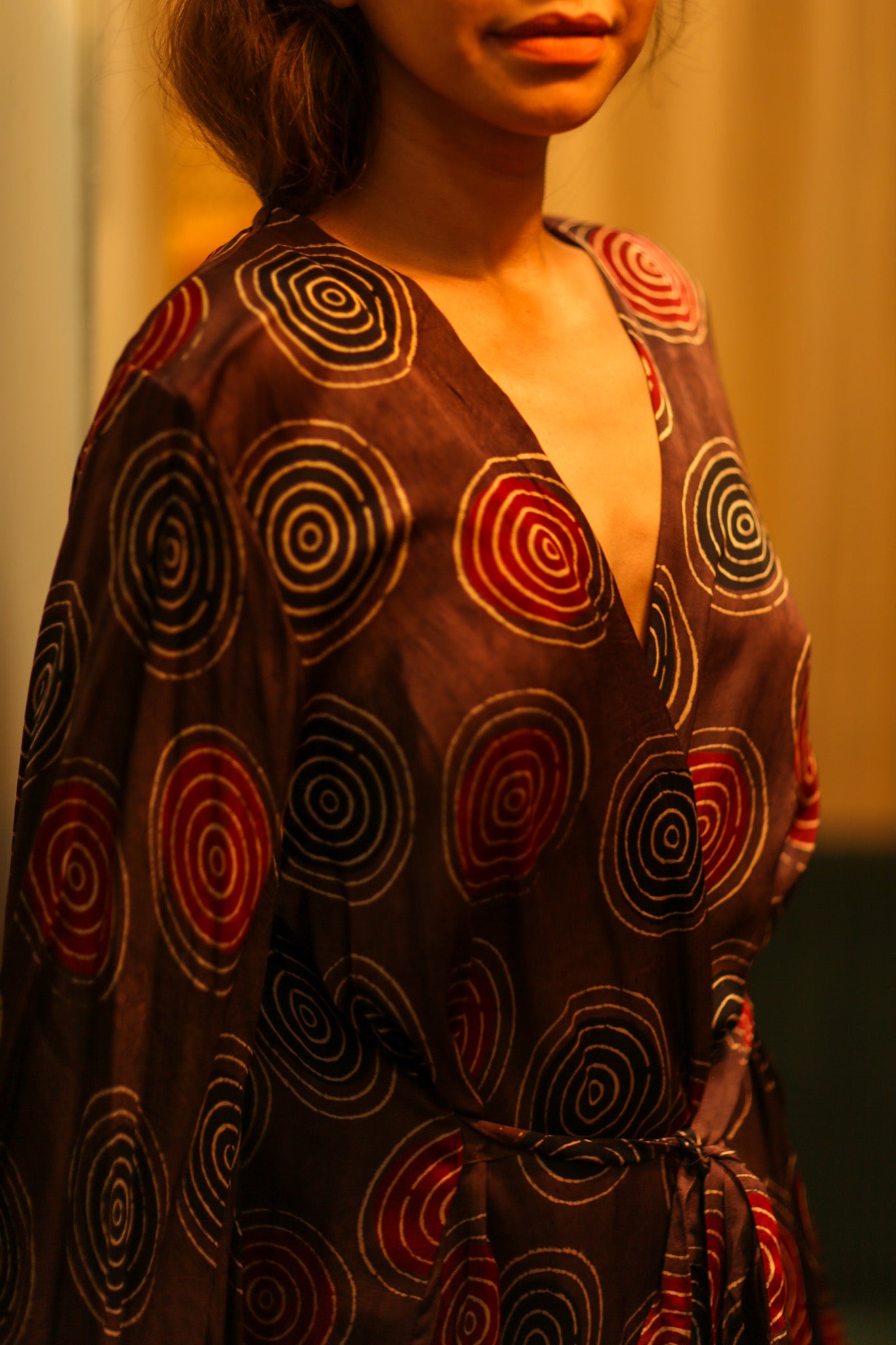 PINA SILK KIMONO BURGUNDY CIRCLE