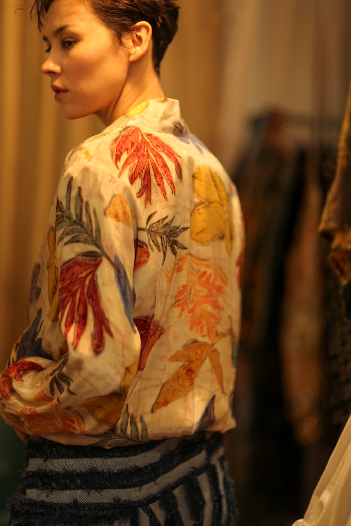 ANCHA SILK BOMBER JACKET PRESSED FLOWERS