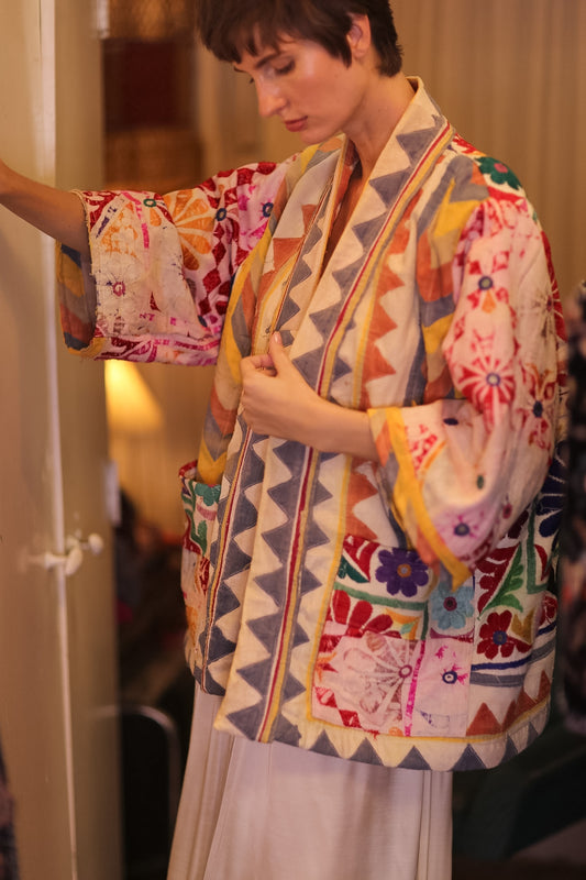 EMBROIDERED SUZANI SHORT KIMONO SPRING
