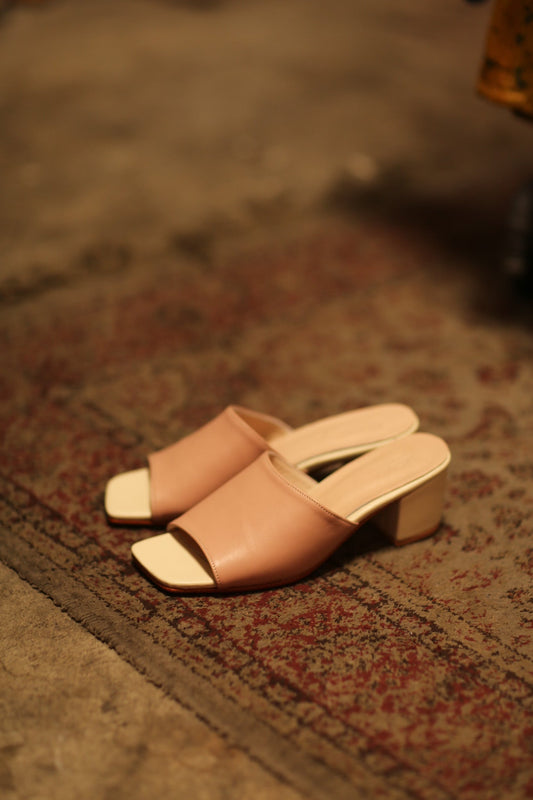 LEATHER HEELED MULES LORIN YELLOW GREY